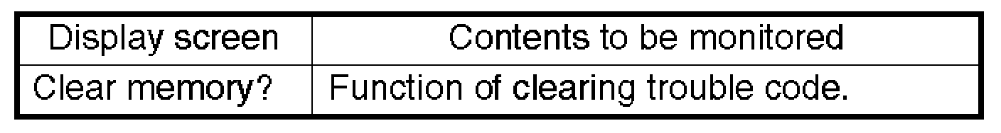 ^ If a particular DTC is not properly stored in memory (due to a drop in ABSCM&H/U power supply, etc.) when a problem occurs, the DTC, followed by a question mark "T" appears on the select monitor display. This shows it may be an unreliable reading.