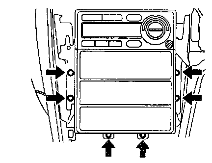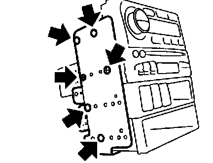 4. Remove fitting screws, and slightly pull radio and switch assembly out from center console.