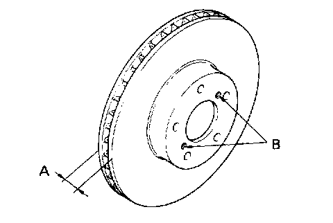 NOTE: If disc rotor seizes up within hub, drive disc rotor out by installing an 8-mm bolt in holes B on the rotor.