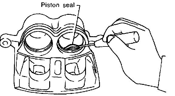 2. Apply a coat of brake fluid to the piston seal and fit piston seal in groove on caliper body.