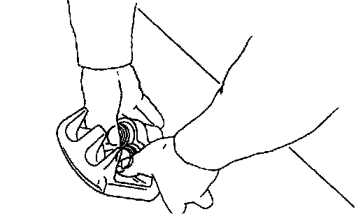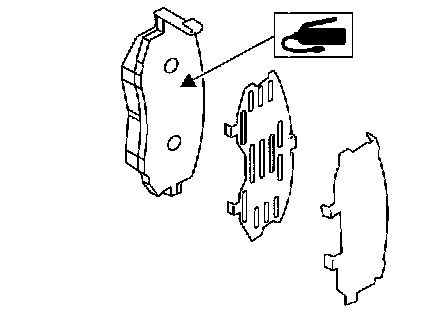^ A wear indicator is provided on the inner disc brake pad. If the pad wears down to such an extent that the end of the wear indicator contacts the disc rotor, a squeaking sound is produced as the wheel rotates. If this sound is heard, replace the pad.