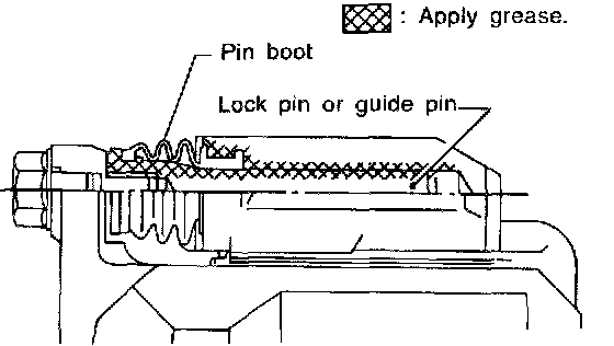 7. Apply a coat of specified grease to the lock pin and guide pin, outer surface, cylinder inner surface, and boot grooves.
