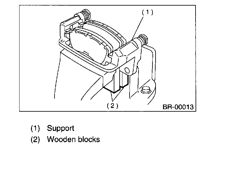 NOTE: If it is difficult to push piston during pad replacement, loosen air bleeder to facilitate work.