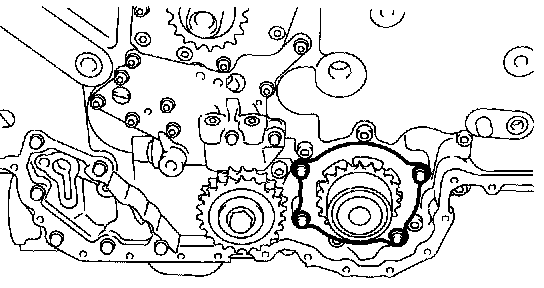 NOTE: When water pump cannot be easily removed, install M8 bolt in opposing bolt holes ("A" in figure). Alternately tightening each bolt should be enough to gradually free water pump from rear chain cover.