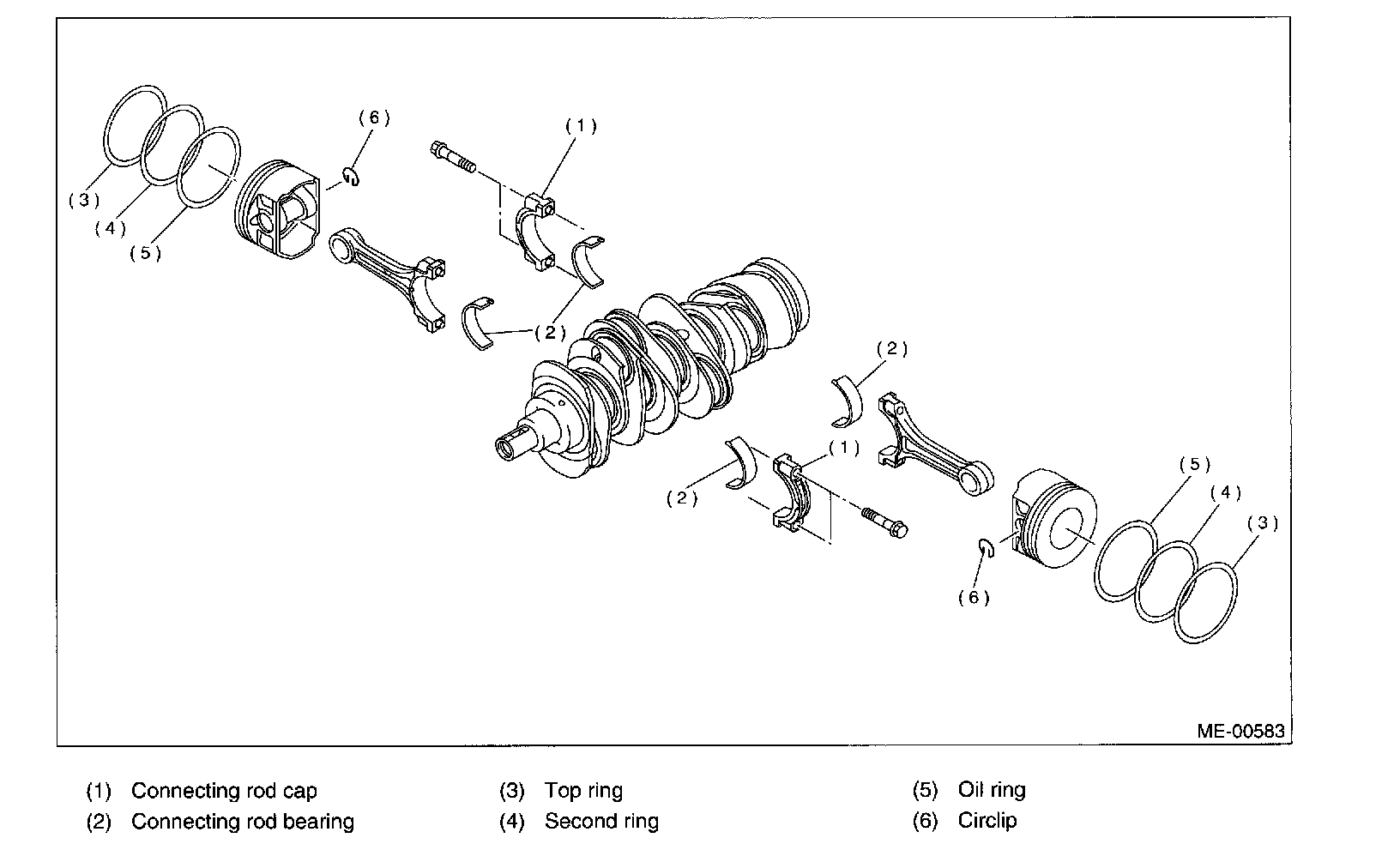 CAUTION: Arrange removed connecting rod, connecting rod cap and bearing in order to prevent confusion.