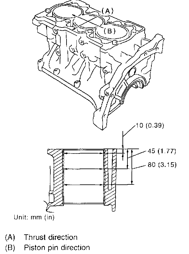 2. How to measure the inner diameter of each cylinder Measure the inner diameter of each cylinder in both the thrust and piston pin directions at the heights shown in the figure, using a cylinder bore gauge.