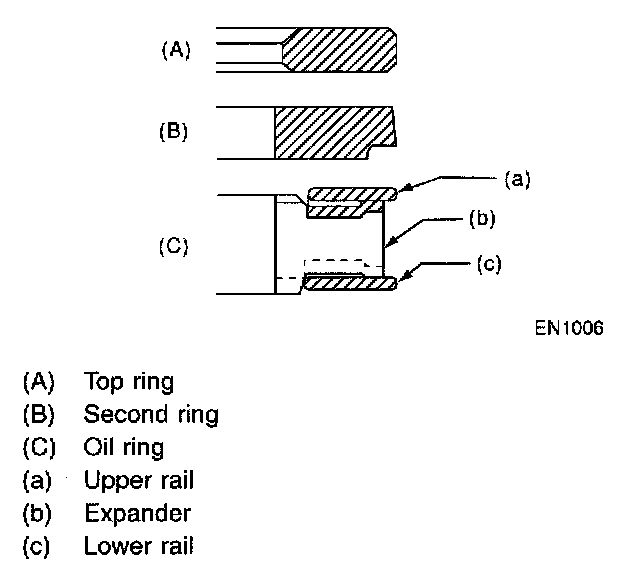 ^ The oil ring is a combined ring consisting of two rails and a spacer in between. When installing, be careful to assemble correctly.