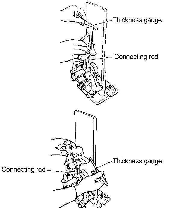 3. Install connecting rod fitted with bearing to crankshaft and measure the side clearance (thrust clearance). Replace connecting rod if the side clearance exceeds the specified limit.