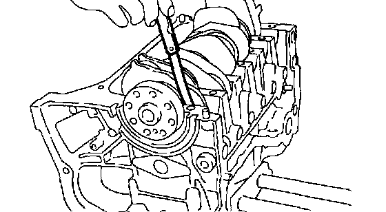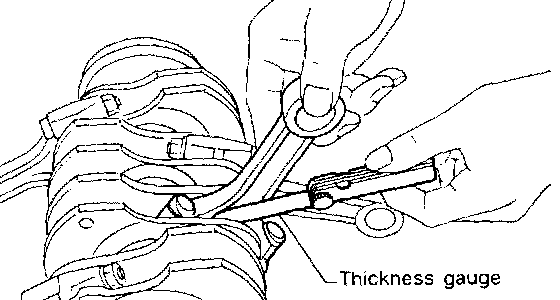 4. Measure the thrust clearance of crankshaft at center bearing. If the clearance exceeds the limit, replace bearing.