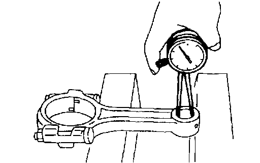 6. Inspect bushing at connecting rod small end, and replace if worn or damaged. Also measure the piston pin clearance at the connecting rod small end.