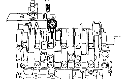 CAUTION: If a suitable V-block is not available, install #1 and #5 crankshaft bearing on cylinder block, position crankshaft on these bearings and measure crankshaft bend using a dial gauge.