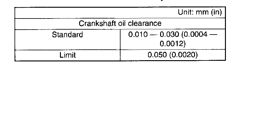 Crankshaft bend limit: 0.035 mm (0.0014 inch)