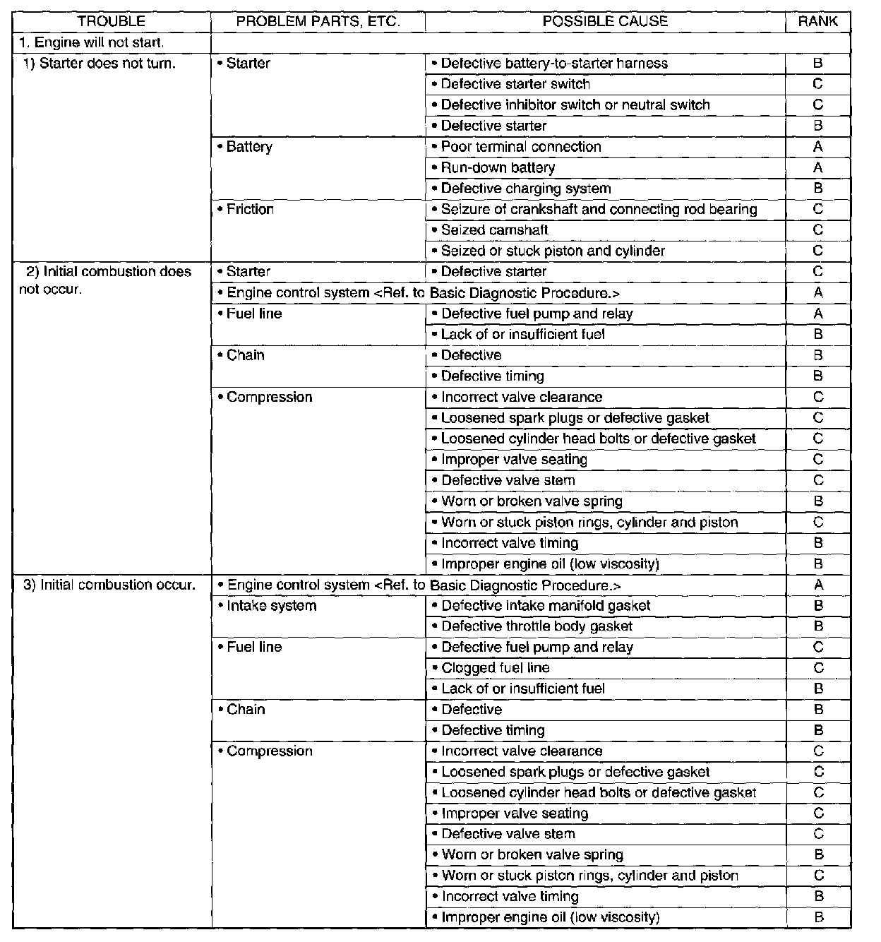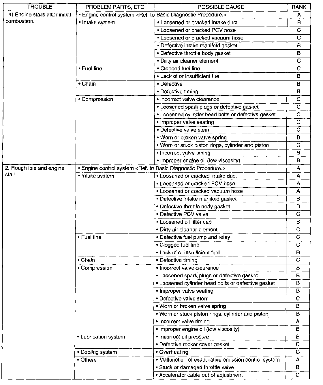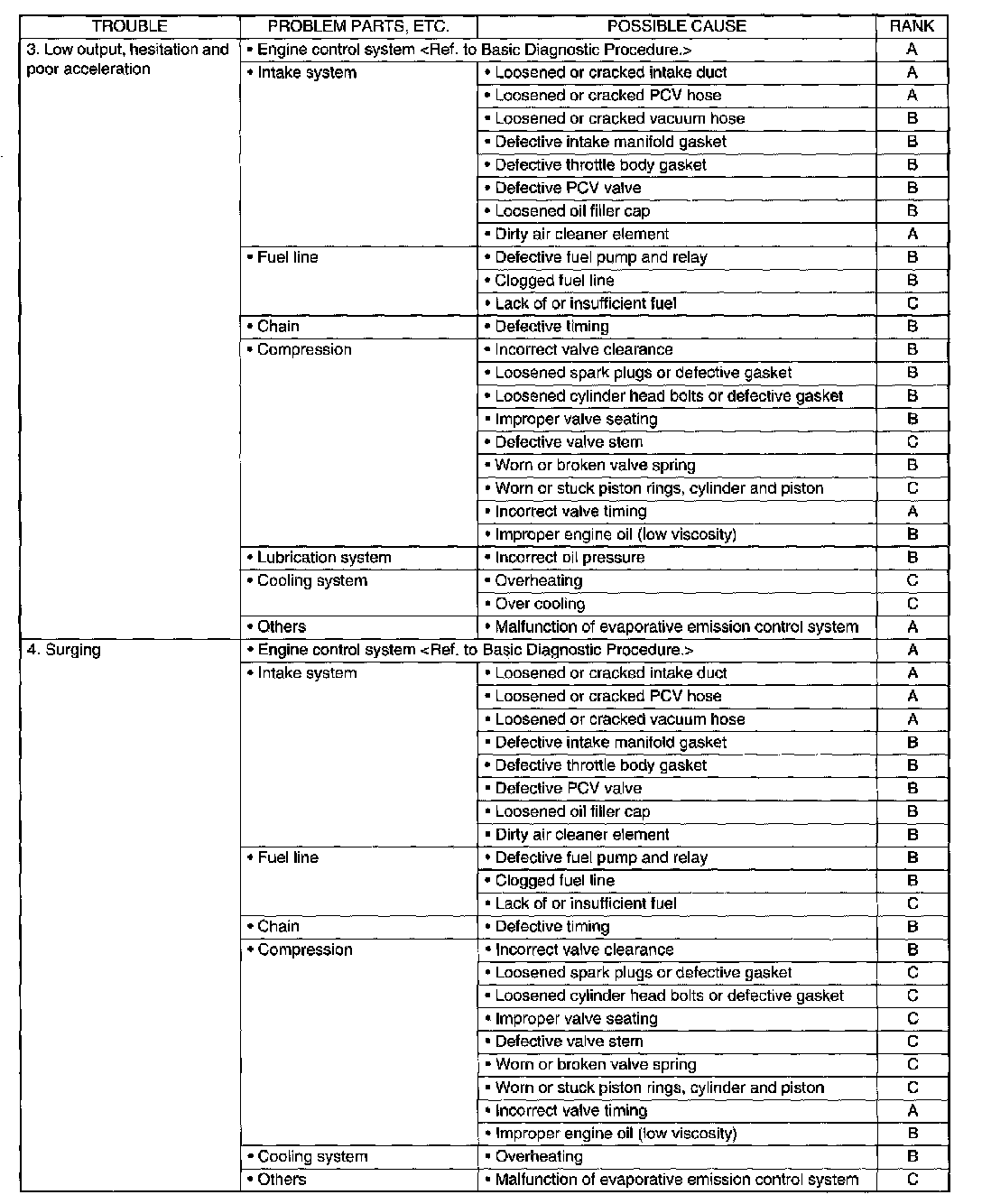 NOTE: "RANK" shown in the chart refer to the possibility of reason for the trouble in order ("Very often" to "Rarely")