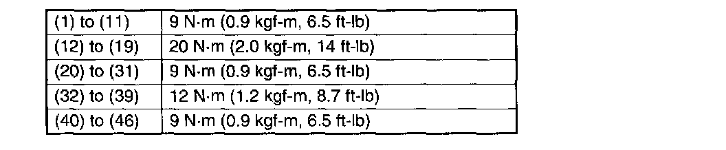 (20) to (31) 9 Nm (0.9 kgf-m, 6.5 ft. lbs.)