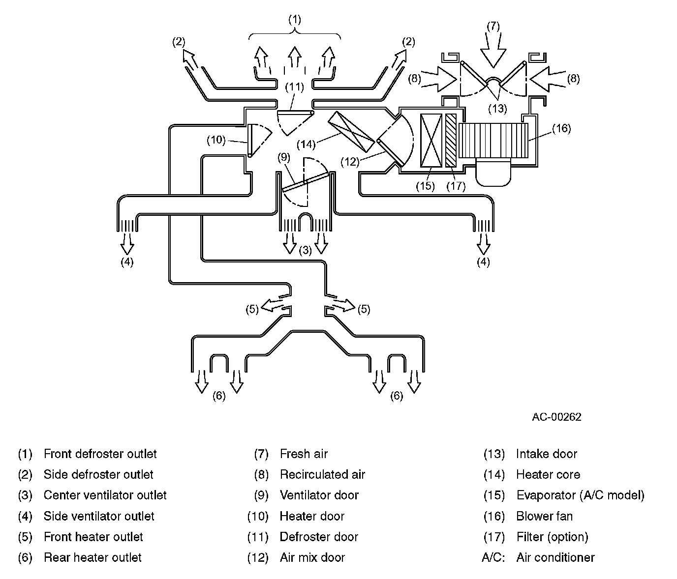 The heater control unit is located in the middle portion of the instrument panel.