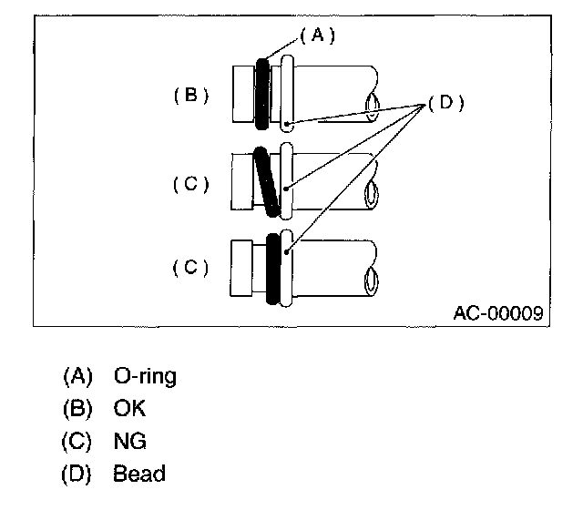 - In order to keep the O-rings free of lint which will cause a refrigerant gas leak, perform operations without gloves and shop towels.