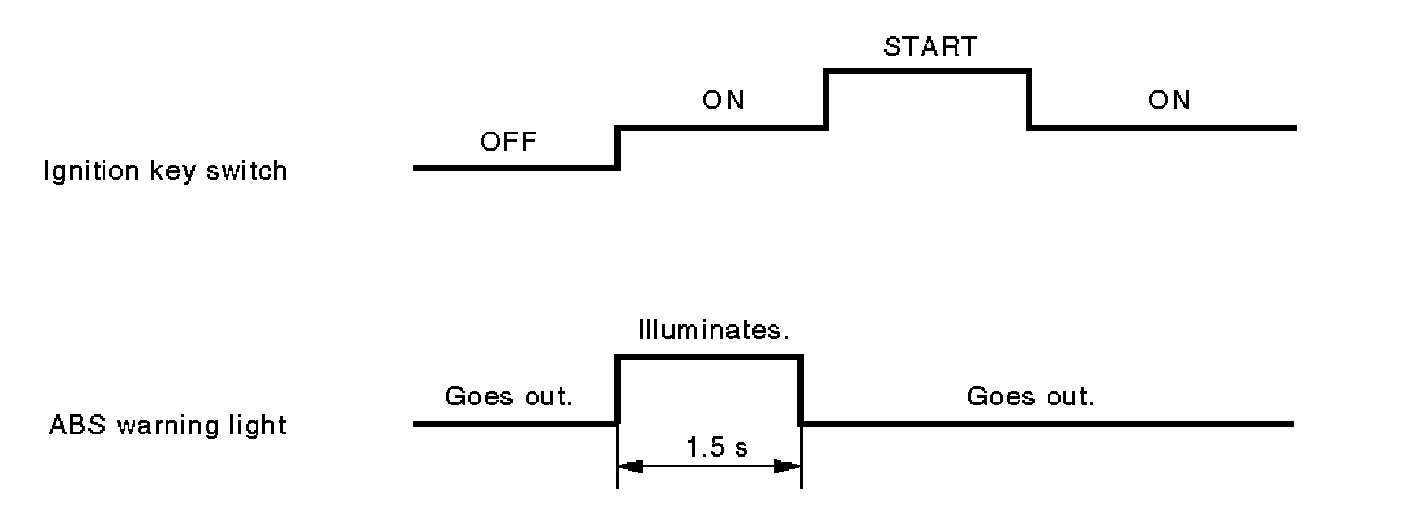 1. When the ABS warning light does not illuminate in accordance with this illumination pattern, there must be an electrical malfunction.