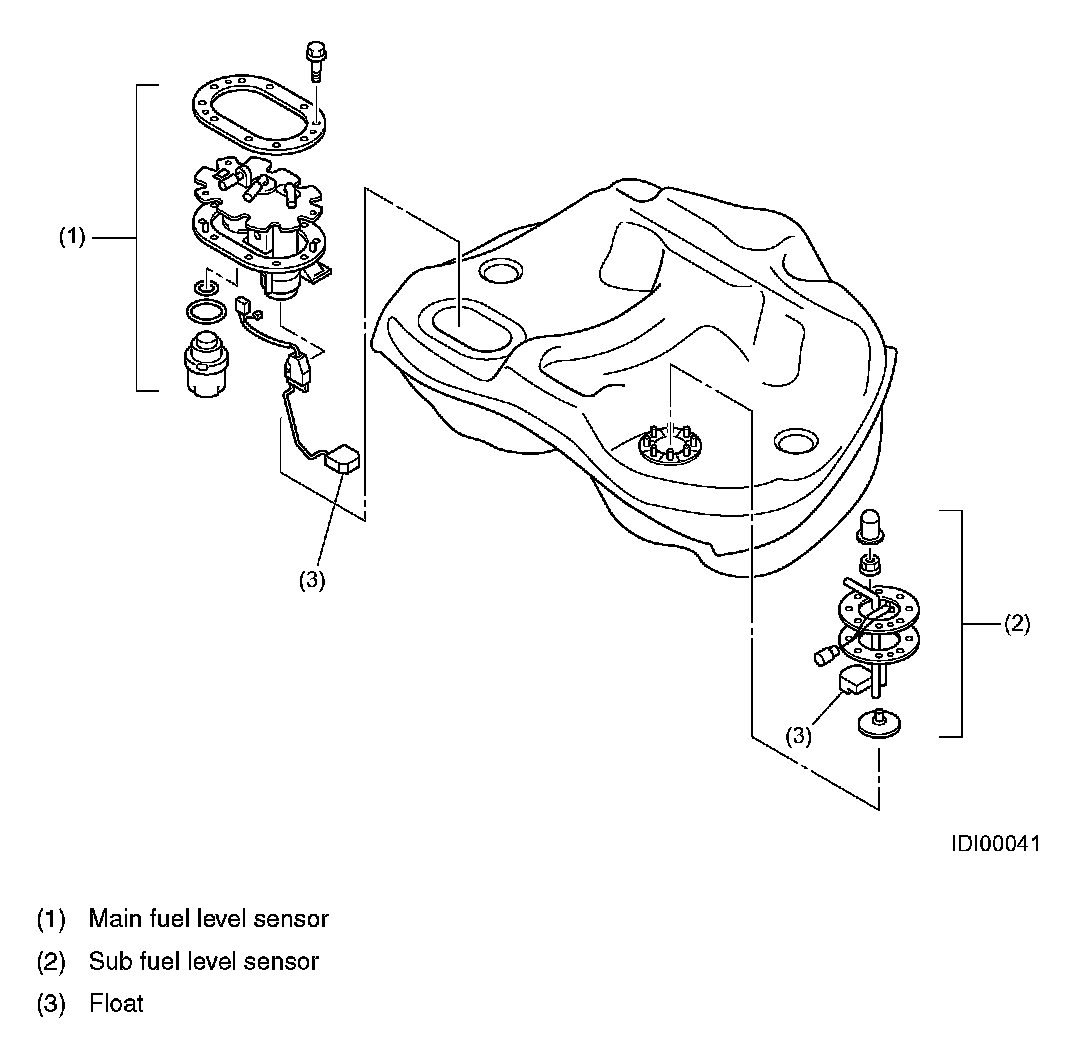 - All models are equipped with two fuel level sensors. These sensors are installed in the fuel tank, one on the right side and the other on the left side. Two sensors are necessary because the fuel tank is divided into main and sub tank compartments.