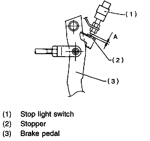 Loosen the lock nut, and adjust stop light switch position until the clearance (A) between threaded end of the stop light switch and the stopper becomes