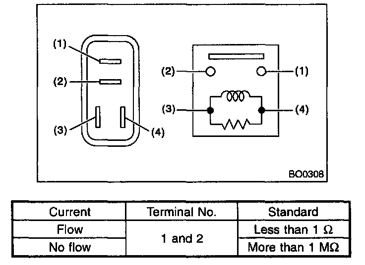 Measure tail and illumination relay resistance between terminals while connecting terminal No. 4 to battery positive terminal No. 3 to battery ground terminal.