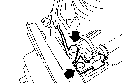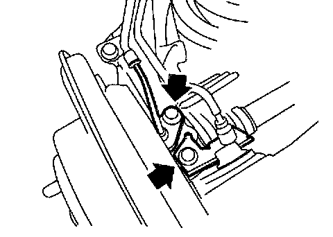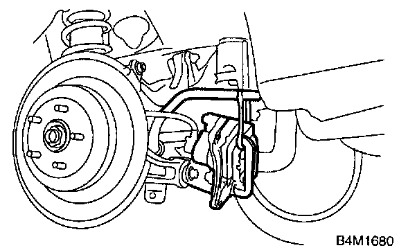 7. Remove brake caliper from back plate and suspend it from stabilizer using a piece of wire.