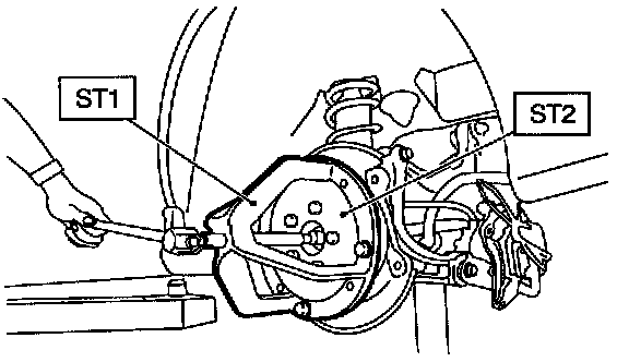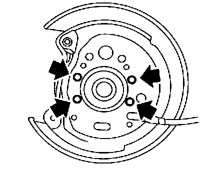 1. Align hub unit bearing with back plate at mounting holes and install hub unit assembly and back plate. Temporarily tighten axle nuts.