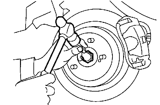 CAUTION: Be sure to loosen and retighten axle nut after removing wheel from vehicle. Failure to follow this rule may damage wheel bearings.