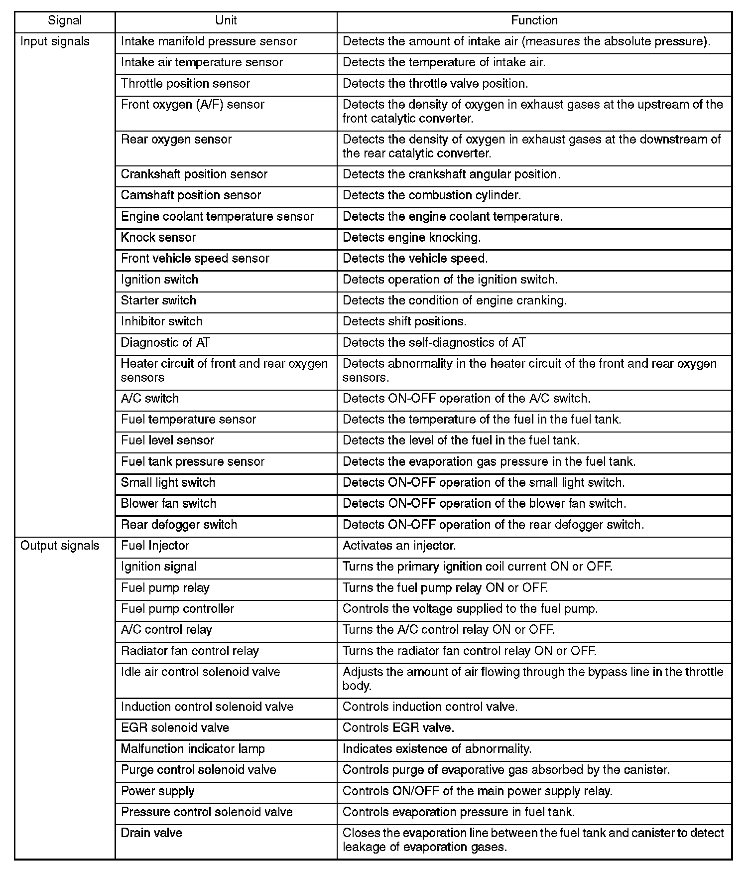 - The ECM receives signals from various sensors and based on them, it determines the amount of fuel injected and the fuel injection timing. It performs the sequential fuel injection control over the entire engine operating range except during start-up of the engine.
