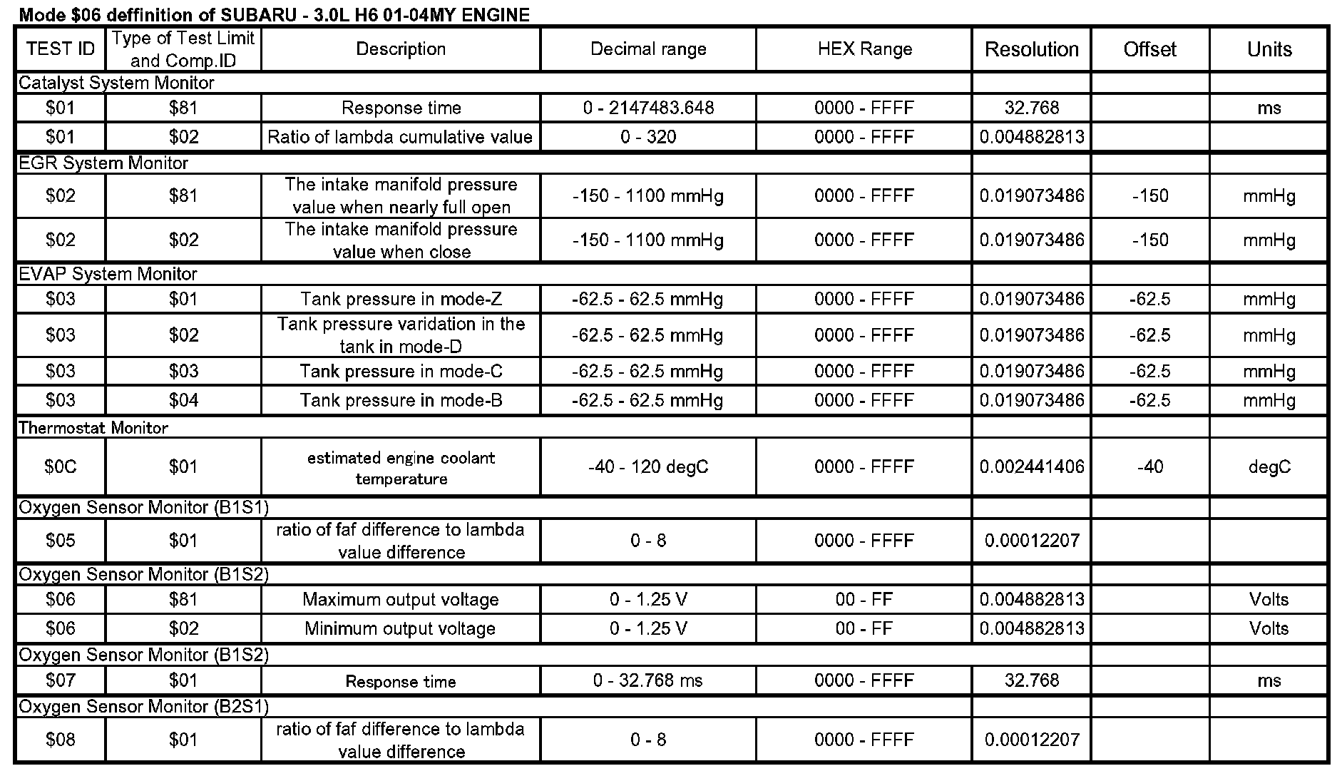 Outback F6-3.0L