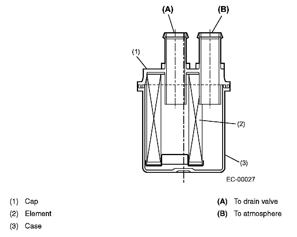 The drain filter is installed at the air inlet port of the drain valve. It cleans the air taken in the canister through the drain valve.