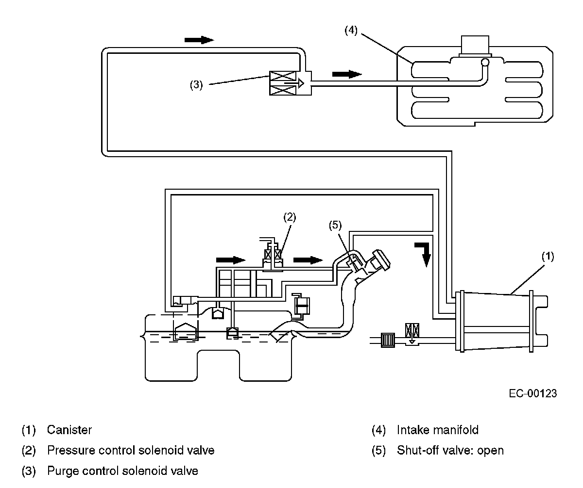 GENERALThe on-board refueling vapor recovery system allows the fuel vapors in the fuel tank to be introduced directly into the canister through the vent valve when the fuel tank inside pressure increases as a result of refueling.