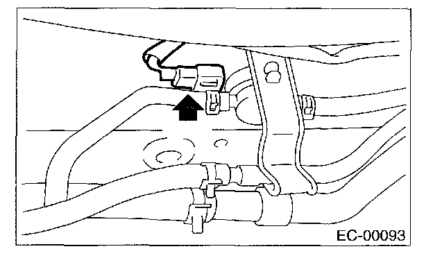 5. Disconnect two evaporation hoses from pressure control solenoid valve.