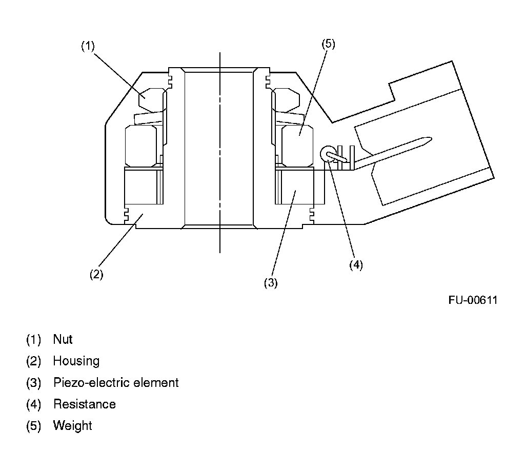 - In addition to a piezo-electric element, the sensor has a weight and case as its components. If knocking occurs in the engine, the weight in the case moves causing the piezo-electric element to generate a voltage.