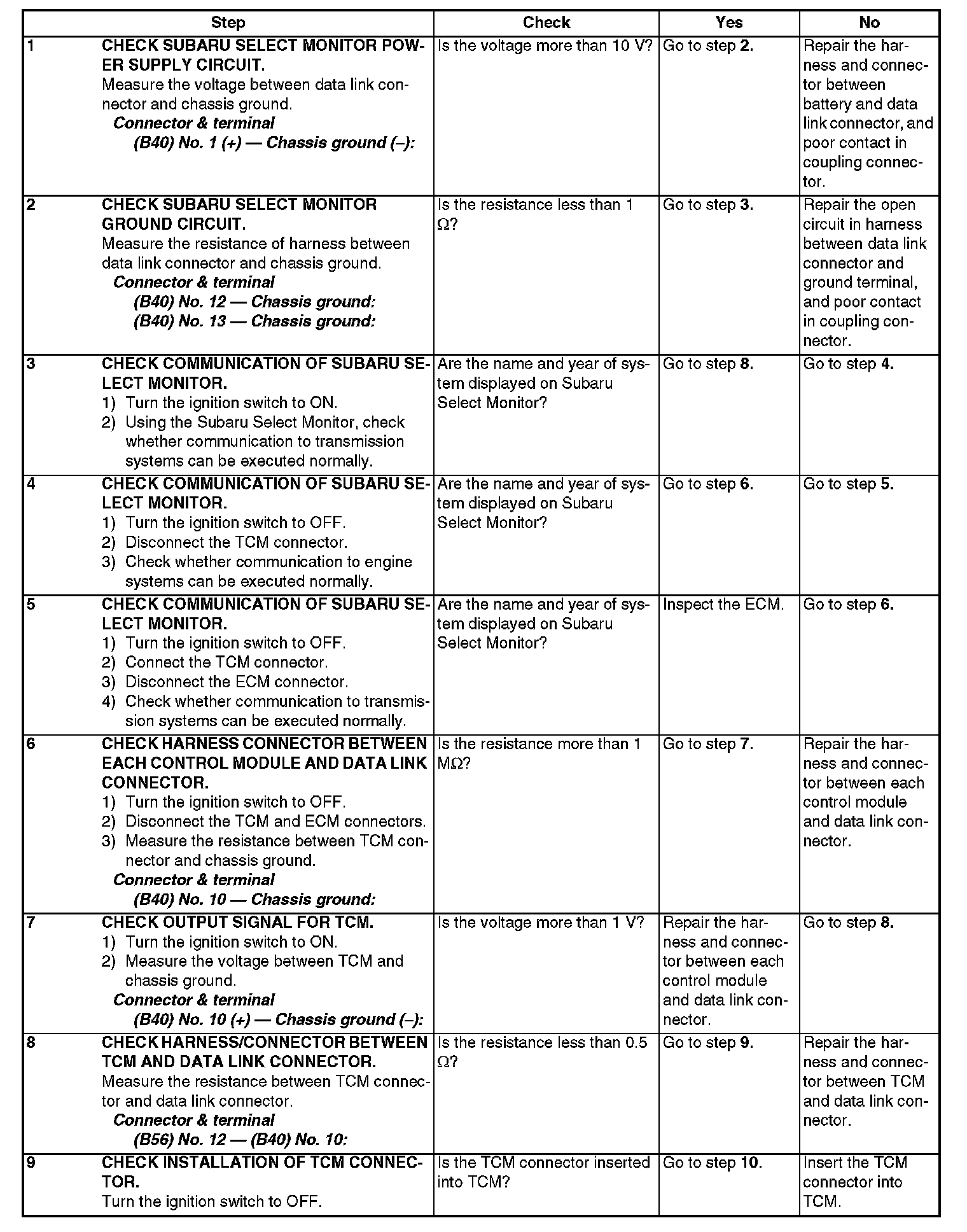 Diagnostic Procedure for Subaru Select Monitor CommunicationCOMMUNICATION FOR INITIALIZING IMPOSSIBLE