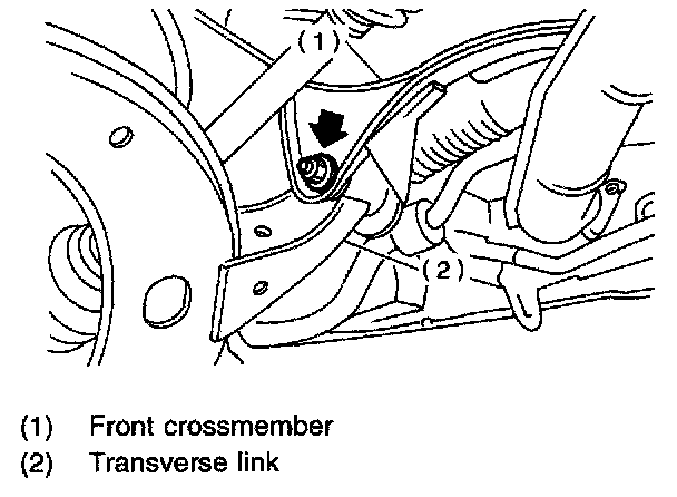 6. Remove nut (do not remove bolt.) securing transverse link to crossmember.