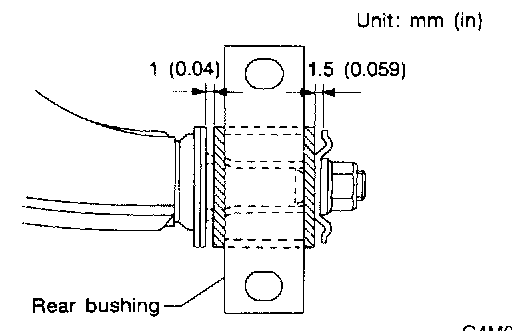 NOTE: Move rear bushing back and forth until transverse link-to-rear bushing clearance is established (as indicated in figure.) before tightening.