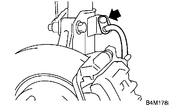 4. Install bolts which secure brake hose to strut.