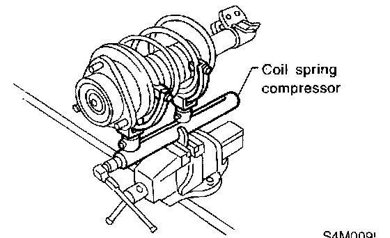 1. Using a coil spring compressor, compress coil spring.