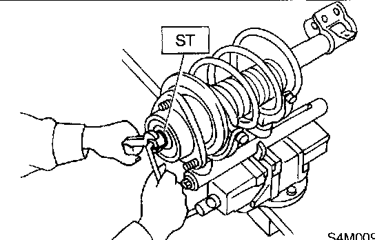 1. Before installing coil spring, strut mount, etc., on the strut, check for the presence of air in the dampening force generating mechanism of the strut since air prevents proper dampening force from being produced.
