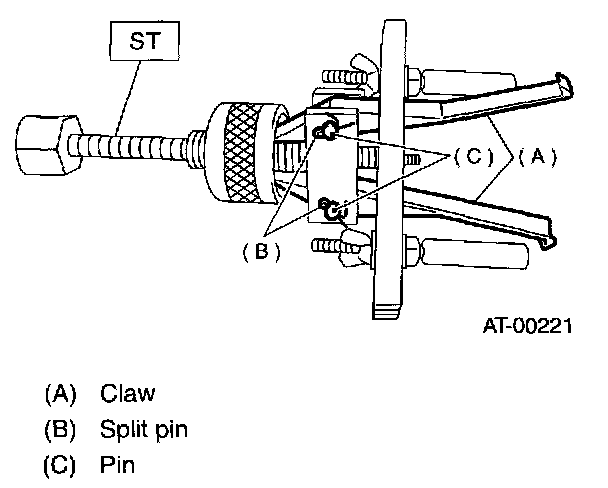 1. Using a press and ST, remove the taper roller bearing.