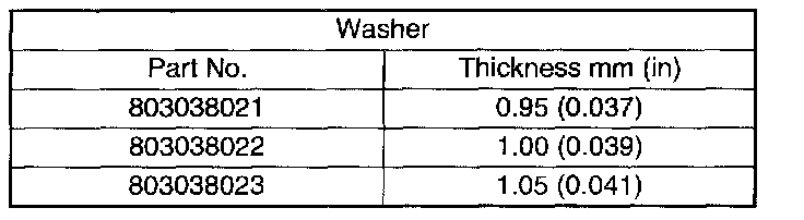 2. If backlash is not as specified, select a washer from the table below.