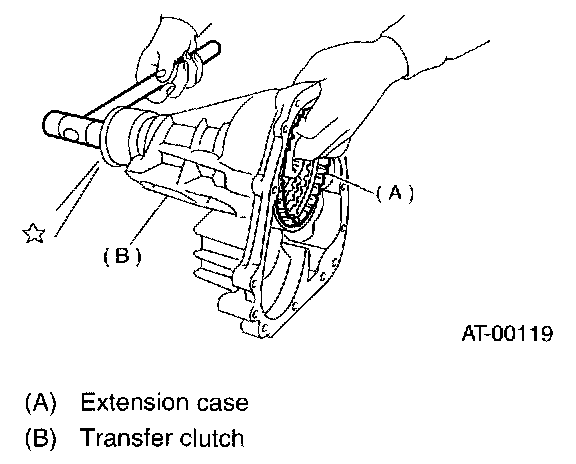 1. Take out the transfer clutch by lightly tapping the end of the rear drive shaft.