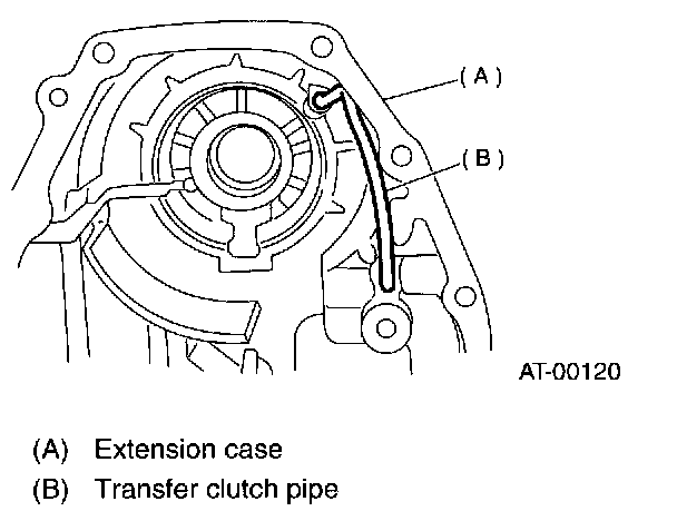 3. Install the transfer clutch pipe to extension case without bending pipe.