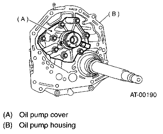 5. After correctly installing the new gasket to the case mating surface, carefully install the oil pump housing assembly. Be careful to avoid hitting the drive pinion against the inside of the case.