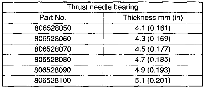 3. Calculation of total end play Select suitable bearing race from among those listed in this table so that clearance C is in the 0.25 to 0.55 mm (0.0098 to 0.0217 inch) range. C = (L + G) - l