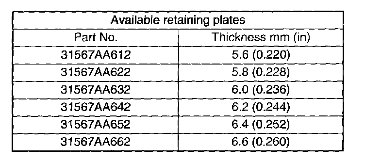 NOTE: Select a retaining plate with a suitable value from the following table, so that the clearance becomes the standard value.