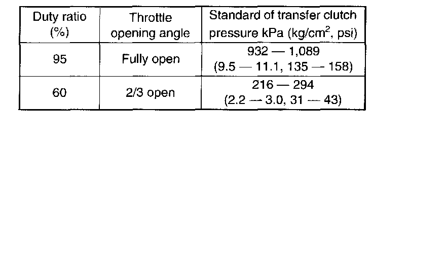 Check the transfer clutch pressure in accordance with the following chart in the same manner as with line pressure.