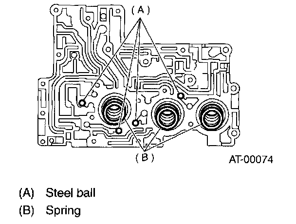 4. Install the spring and four steel balls to specified positions of upper valve body.