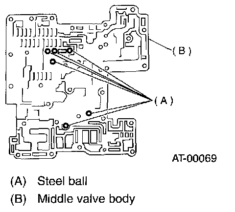 6. Insert six steel balls in their proper positions to middle valve body.