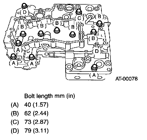 NOTE: Install the bolts (D) from upper valve body side.